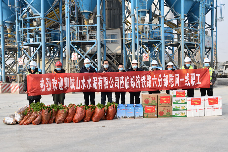 为体现山水集团的担当和人文关怀,近日,聊城公司市场营销部一行5人一早满载山水集团的爱心蔬菜和肉蛋来到郑济高铁中建八局拌和站,将一箱箱的苹果、鸭梨、鸡蛋、鸡腿,一袋袋的土豆、西葫以及聊城公司自种的有机蔬菜芹菜和小白菜送到了他们身边,给郑济高铁项目施工人员带来温暖,也带了山水集团对留守施工人员和关爱和新春祝福。